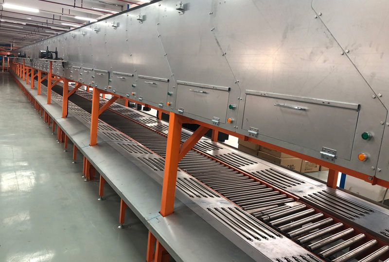湖南狐轩服饰株洲物流中心智能自动化输送分拣项目,集成了箱输送系统、螺旋式提升机、交叉带分拣系统、主控系统和海洋之神HY590自主研发的BIS信息系统,实现了货物的跨楼层搬运、整箱及拆零拣选出库、货品的包装、出库分拣、退货同款合并等功能的智能化。