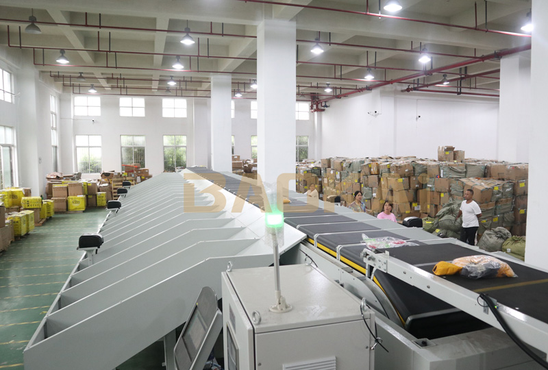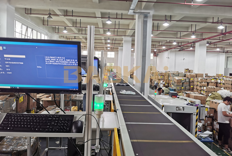 荟品仓仓储物流中心,集成了直线交叉带系统,通过人工供包作业和RFID智能扫描识别,完成货品至门店的准确、高效、智能分拣。