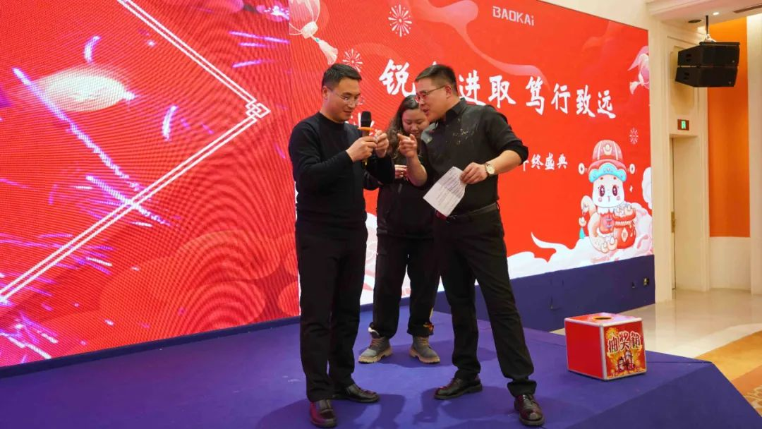 各位领导逐一上台为大家抽取并为幸运儿颁发奖品,同时临时增设超额奖励和随机红包,逐渐将晚宴气氛推向高潮。